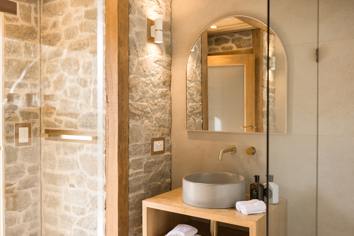 After indulging in the outdoor woodfired hot tub or double couples shower, cosy up on the lounge in front of the gas fireplace wearing our super soft Carlotta and Gee linen bathrobes, or in the reading chair looking out to the unspoilt bush land as native wildlife graze outside.